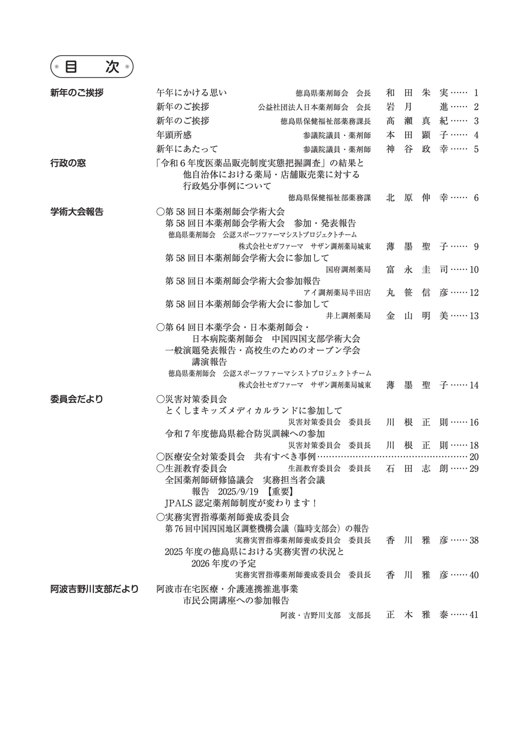 徳島県薬剤師会 会長 和 田 朱 実 …… 1